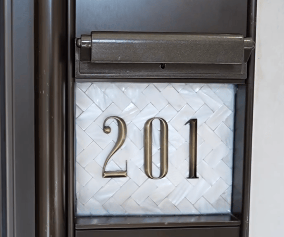你会惊喜于前滩滨江道对生活细节的体察入微。每扇入户门旁,都配置了天然贝母拼接的入户门牌,精巧雅致间彰显仪式感。