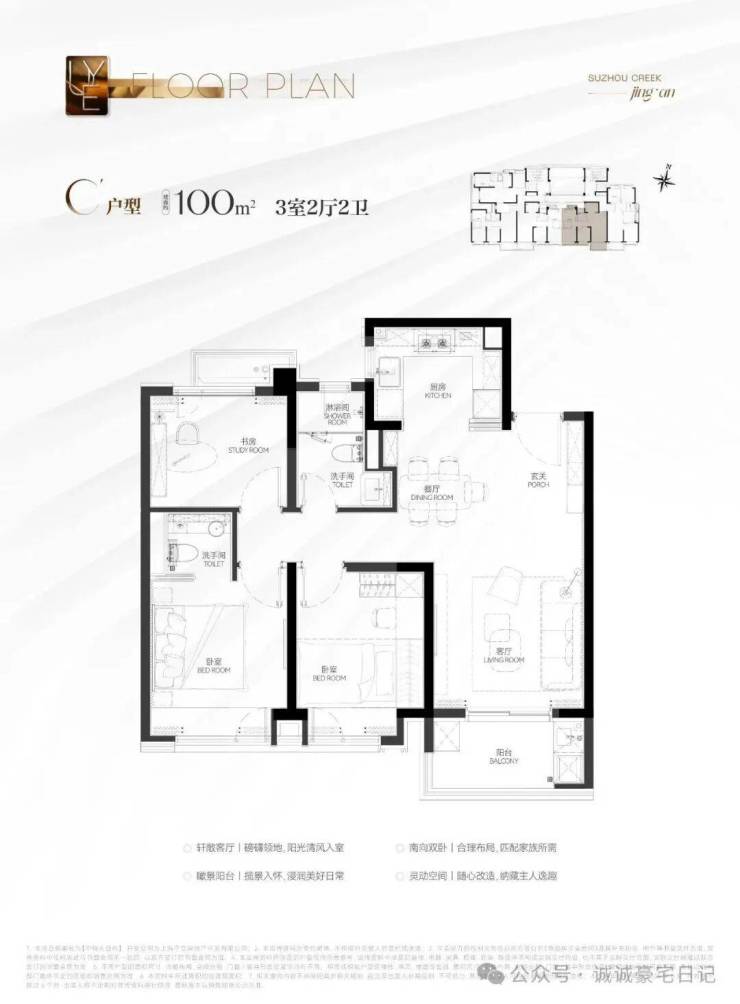 建面约100㎡3房户型