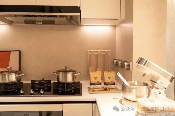 开放式厨房设计,更有效促进家人间交流互动!吊轨移门开合设计,更具生活意趣~
