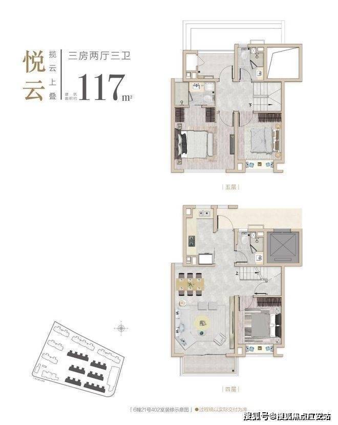项目的上叠户型3房3卫的设计,每个家庭成员都能找到独属于自己的天地。