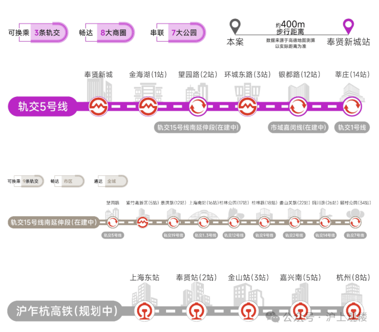 交通方面:项目多轨交环绕,5号线、15号线南延伸段(在建中)、市域嘉闵线南延伸段(规划中)、沪乍杭高铁(规划中)及南枫线(在建中)