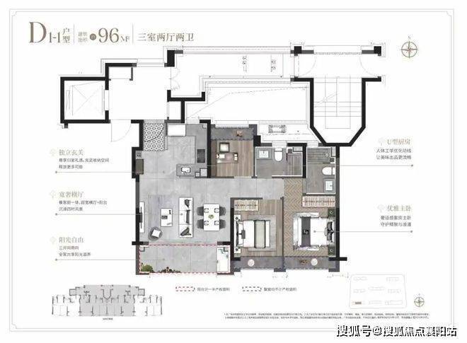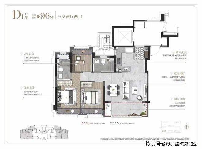 建面约96㎡三房:内环稀缺的“紧凑改善”