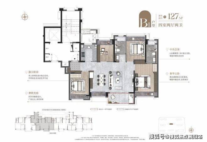 四开间朝南,双套房设计,LDKB一体化格局。约4.8米宽厅搭配0.35超大窗墙比,采光与景观面拉到极致。精装配置德国AEG厨电、大理石拼花地面,品质感拉满-2-4。