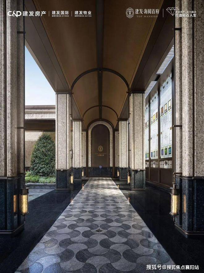 项目沿袭建发“新中式+海派”的造园理念,社区大门复刻和平饭店元素,约300㎡穹顶彩玻大堂采用手绘彩玻工艺,阳光洒落时呈现出老上海画报般的复古质感-2-8。