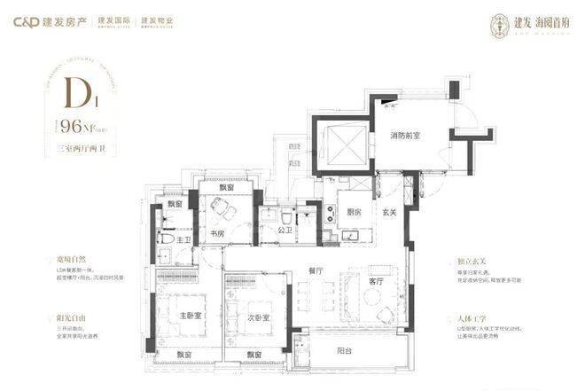 建面约96㎡ 3房2厅2卫