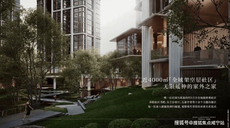 项目打造了约3万㎡立体景观与4000㎡全域架空层相互渗透的生态系统。中心是以约3500㎡下沉水院为核心,通过约6.5米全域架空与约6米下沉庭院叠合,塑造出落差近13米的“自然峡谷”,视觉冲击力震撼。