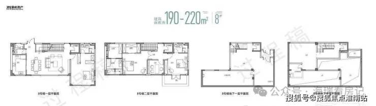 风貌别墅全都是地上2-3层的小面积合院别墅产品,无地下室,建面约179-229㎡左右。