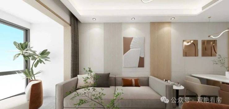 更妙的是建面56㎡与71㎡户型可打通组合,形成建面127㎡的大开间大三房,总价约380万起,客厅、餐厅连通,三间卧室独立分布,满足三代同堂的改善需求。 建面127㎡二合一装修效果赏析