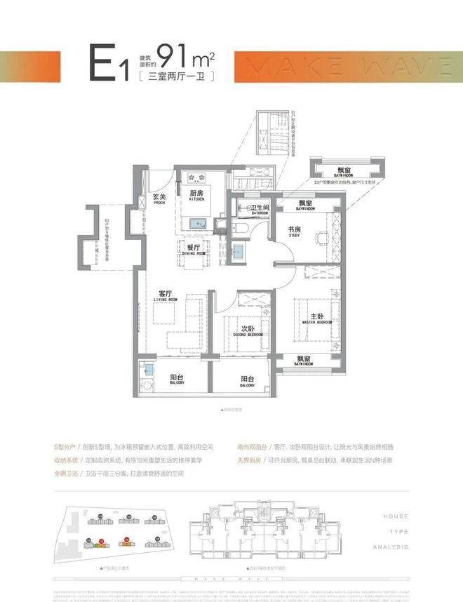 而招商·时代潮派|东屿售楼处电话:400-9699-334✨【官方认证】✅✅✅此次建面约91㎡户型,就做出来了比市面百平户型更好的的“南向双阳台+南北双飘窗”设计。