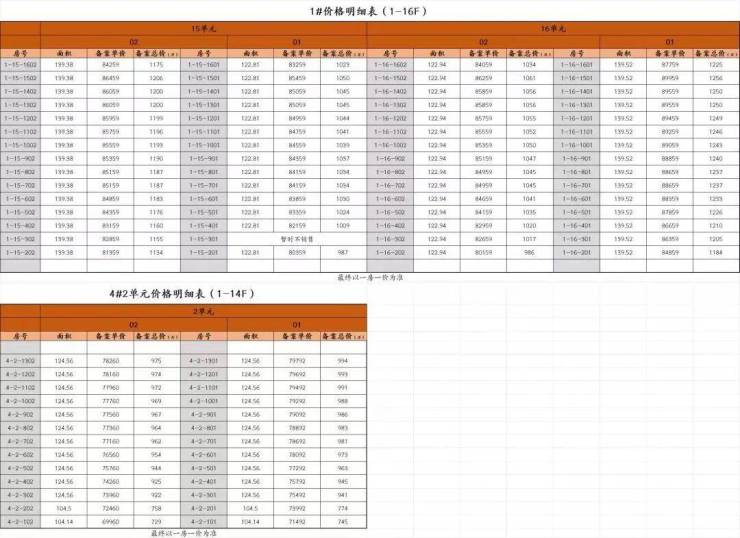 最新一房一价表: