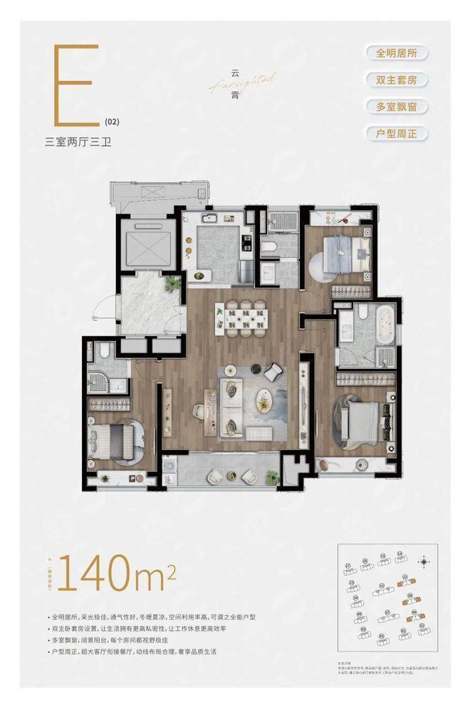 约140㎡高层三房两厅三卫(毛坯)约168㎡高层四房两厅三卫(毛坯)