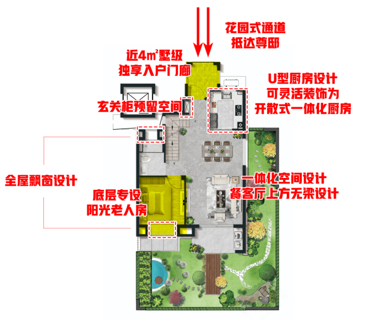 第一、不需要经过门厅及电梯厅的独立入户方式,做到独门独院的感觉,尊享感和仪式感拉满。