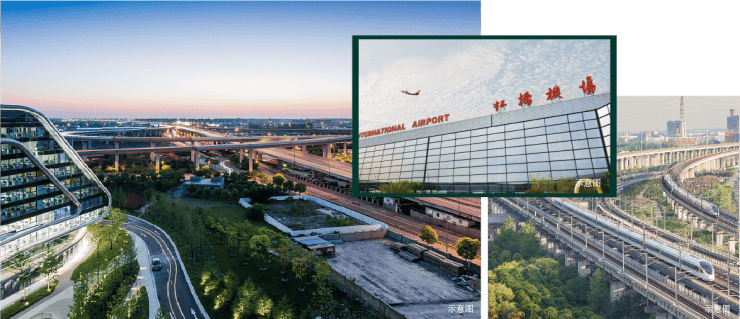 高铁/空港:依托虹桥交通枢纽,高铁快速连通长三角各大城市,直飞航班覆盖东亚、南亚;