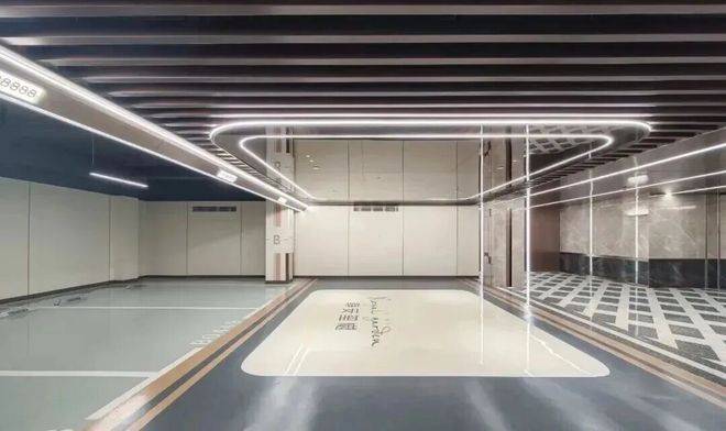 车库公区方面,项目采用贯穿式鱼尾灯坡道和超耐磨地坪,过道全部是精装吊顶,地下管道和局部区域进行二次包裹。