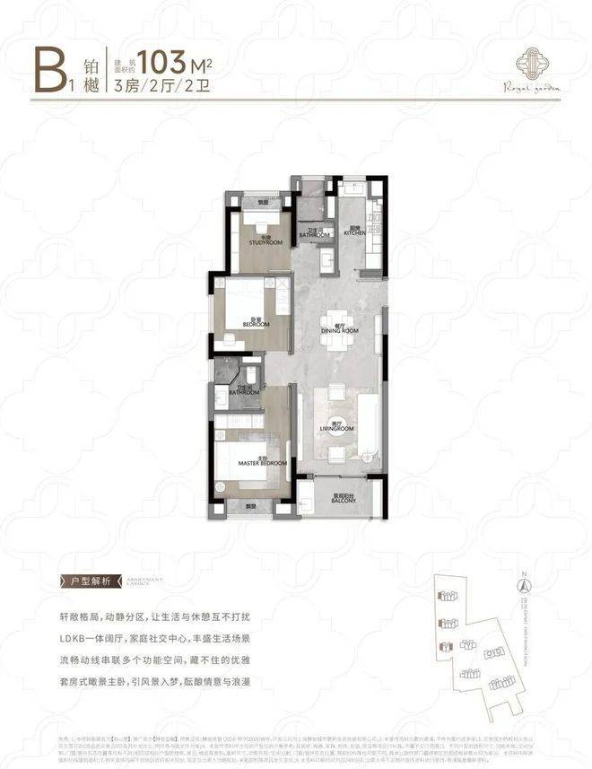 再看建面约104㎡B户型: