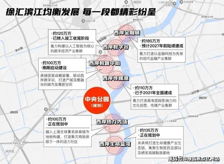 徐汇滨江热度之高,是得益于远瞻世界的战略规划,徐汇滨江打造“世界卓越水岸”,规划有百万方规划组团。徐汇滨江迄今已规划六个百万方组团,聚焦⼀港、⼀⾕、⼀城、⼀场、⼀湾、⼀心的六个百万⽅空间布局(⻄岸⾦融城、⻄岸数字⾕、⻄岸数智中心、⻄岸传媒港、⻄岸热⼒秀场和⻄岸⽣命蓝湾),而第七大组团“中央公园”,完美覆盖海上·清和玺所在上海植物园区域,未来将无界链接城市生态资源,促进徐汇滨江与城区无界融合、兑现徐汇滨江的高质量发展。
