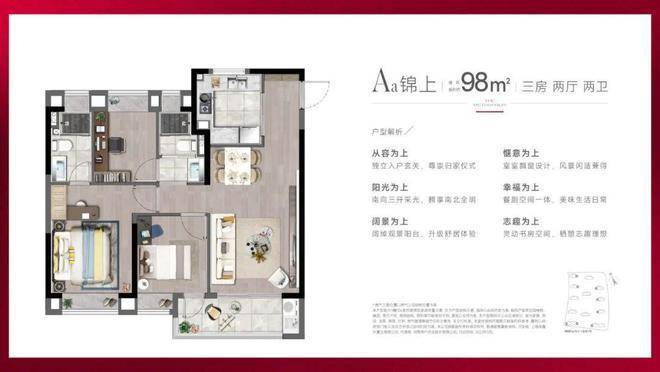 产品方面,项目主推建面约88-98㎡精装3房,功能性和品质感兼具。