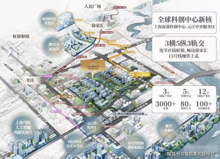 未来将以科创产业为引擎,入驻100+五百强企业,引进80万全球高智人才,建设商业休闲、优质教育、文化体育、城市公园等复合公共配套,筑就创新、人文、生态高度融合的中央服务区,领潮未来都市理想生活,为闵行展开一幅无限想象的蓝图。