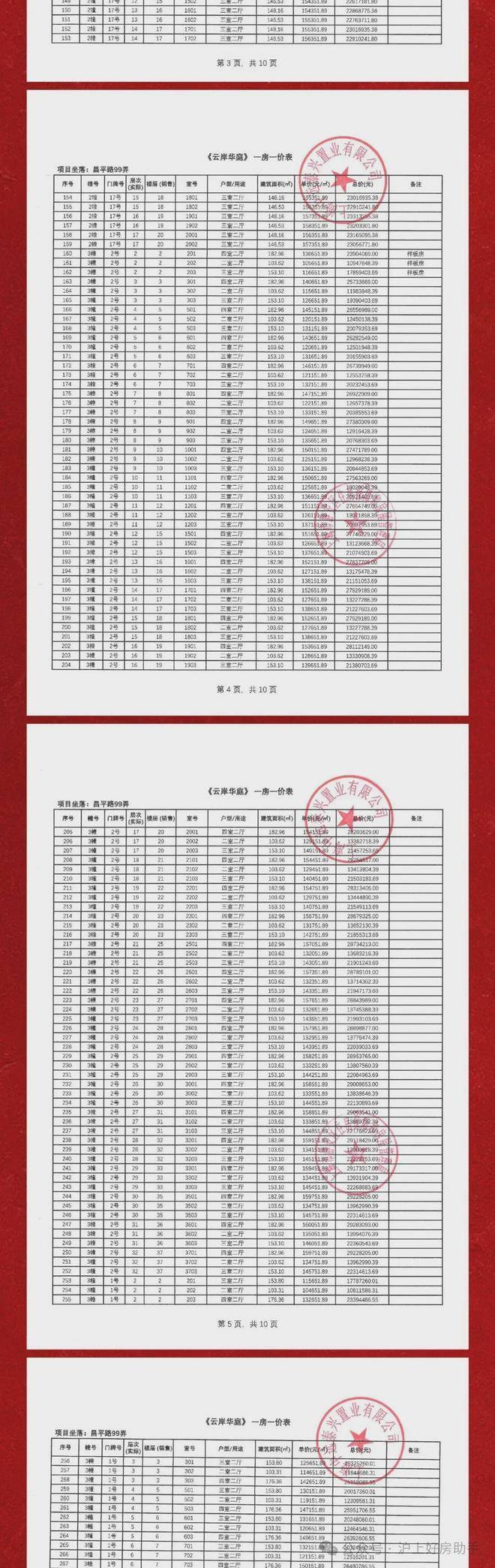 项目一房一价表▼