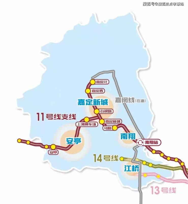 而通过嘉闵线(建设中),南翔可几站内直达虹桥核心区。(嘉闵线,是一条“特殊地铁”,南北走向。自嘉定北站至莘庄北站,其中在南翔设有3个站点。)