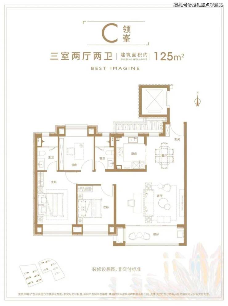 除此之外,项目还有建面约125㎡宽绰三房户型: