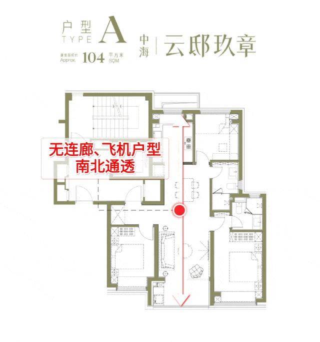 户型几乎无连廊设计,有效规避传统连廊户型的采光不足与隐私泄露问题,打造全明通透的飞机户型,得房率与居住舒适度均优于同类型产品。