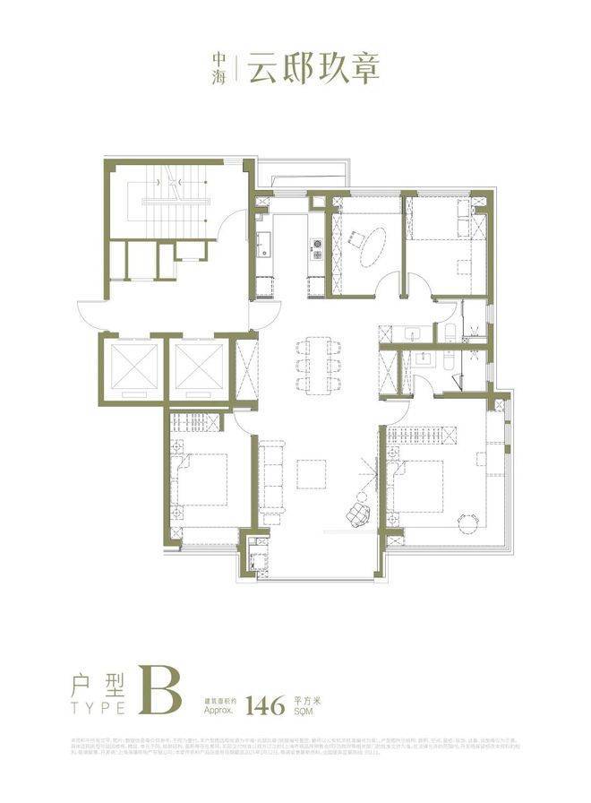 · 146㎡四房:真四房功能性+奢阔尺度,适配多孩家庭或三代同堂需求。