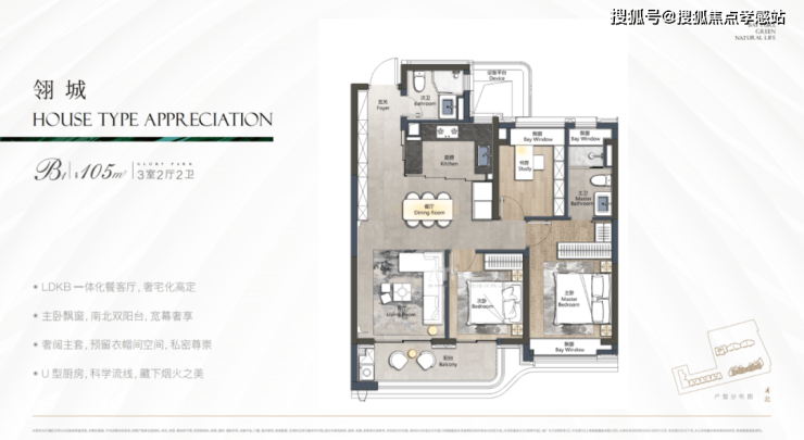 本次项目主推建面约105㎡3房2卫: