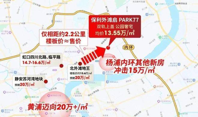 事实上,项目与北外滩地王相隔仅约2.2公里,却呈现出“地王楼板价≈本项目售价”的价差,入手机遇一目了然。