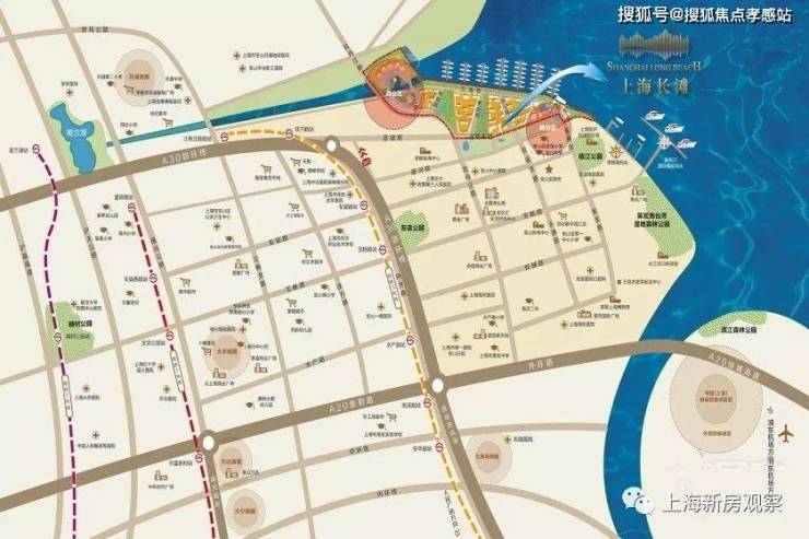 「上海长滩」紧邻逸仙路高架,与上海内环无缝对接!高架快速直达人民广场、杨浦、虹口!是上海难得一见的集自然资源、地理位置与交通优势与一身的滨江宝地!