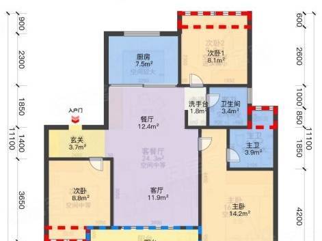 建面约 110㎡ 3 房 2 厅 2 卫