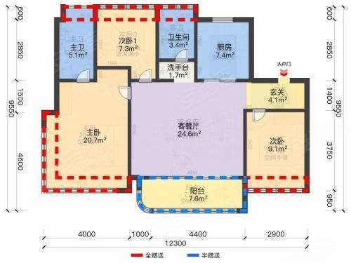 亮点:三开间朝南、南向面宽约 12.3 米、5.4 米横厅、主卧 270° 转角飘窗