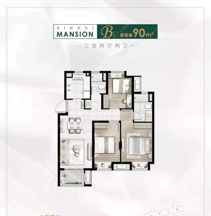 ①86平(三室两厅一卫)边套户型,三面采光