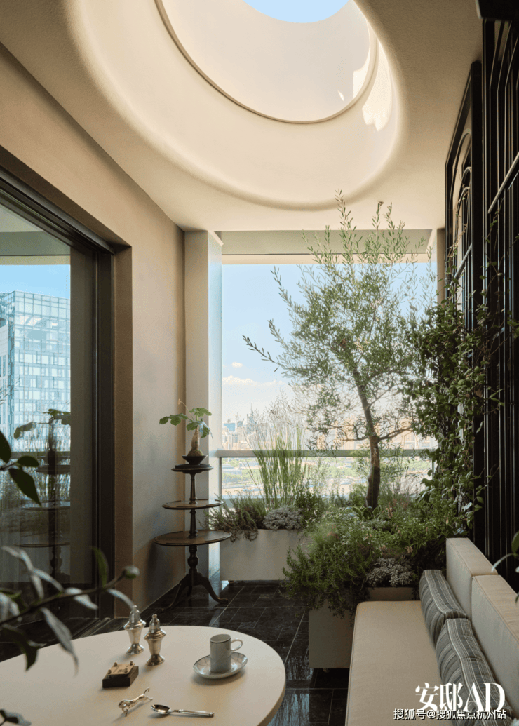 以超白玻璃引入的静谧光景,打破围合式会所的物理边界,设计师通过落地窗景与下沉式庭院的景观联结,以采光和风景实现了地下会所空间的地上化,照抚人类渴望身处自然静谧的精神本能。