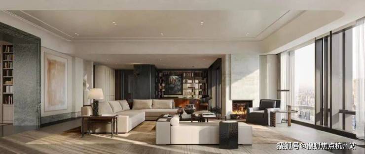 标准层层高约3.15-3.4 米,搭配全景落地窗,室内开阔通透,奢阔感十足。