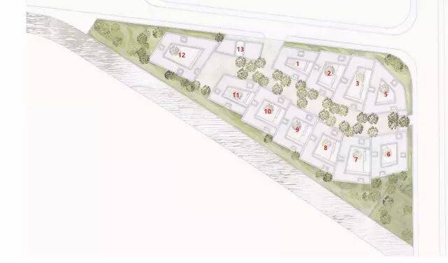 这个项目还是非常符合David Chipperfield的设计风格,朴实、精致,大气,低调,有艺有境。一共12栋(无4号楼),其中12号是楼王,13号是物业管理用房。特别的艺术构思,造就了每一栋建筑独一无二的个性。