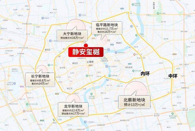 别说静安内部了,扩展到全市,简单看看几大热门板块的新地王,浦东北蔡新地块预计13万/㎡左右、长宁新地块14万/㎡左右,临平路16万+/㎡、徐汇龙华更是奔着17万/㎡去了,这些中环附近板块3房总价起步就是1500万以上!