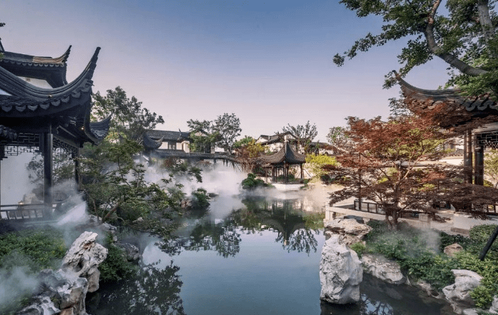 江南园林打造出的居住佳境,他和二十四节气对应,又汲取了很多包括狮子林、拙政林、留园等中国经典园林的精华。