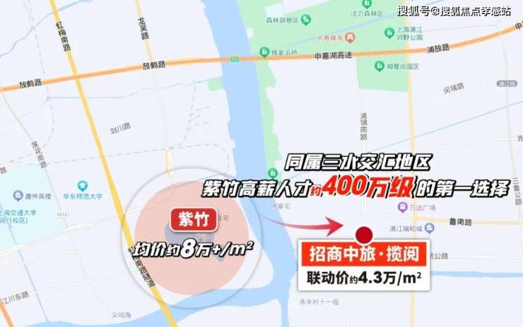 尤其是未来东川路越江隧道开通后,更是一脚油门即紫竹,房价相差一倍有余,对于紫竹人民来说,招商中旅·揽阅真的太香了。