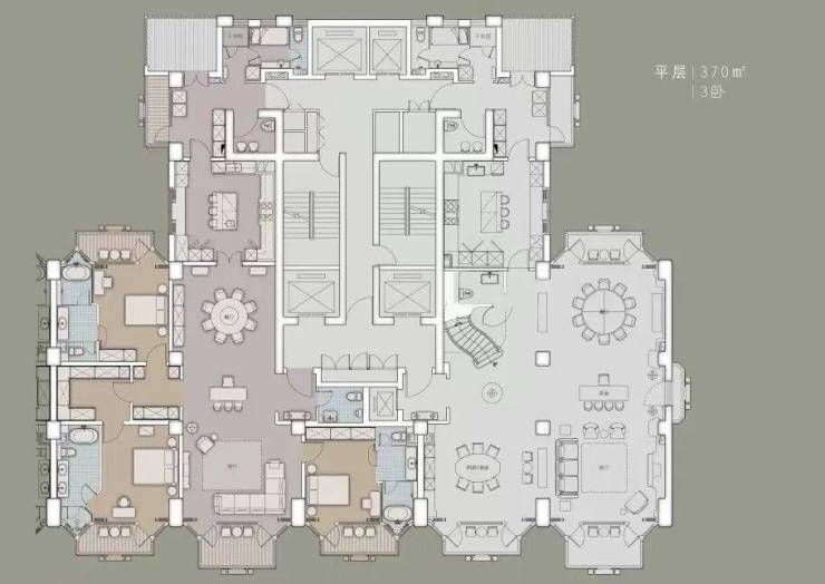 项目分三期开发,2号楼户型分布为一层4户,中间两套为375平米边套为680平米复式,总楼层39层,有两层为避难层,避难层会改造成绿化休闲区。