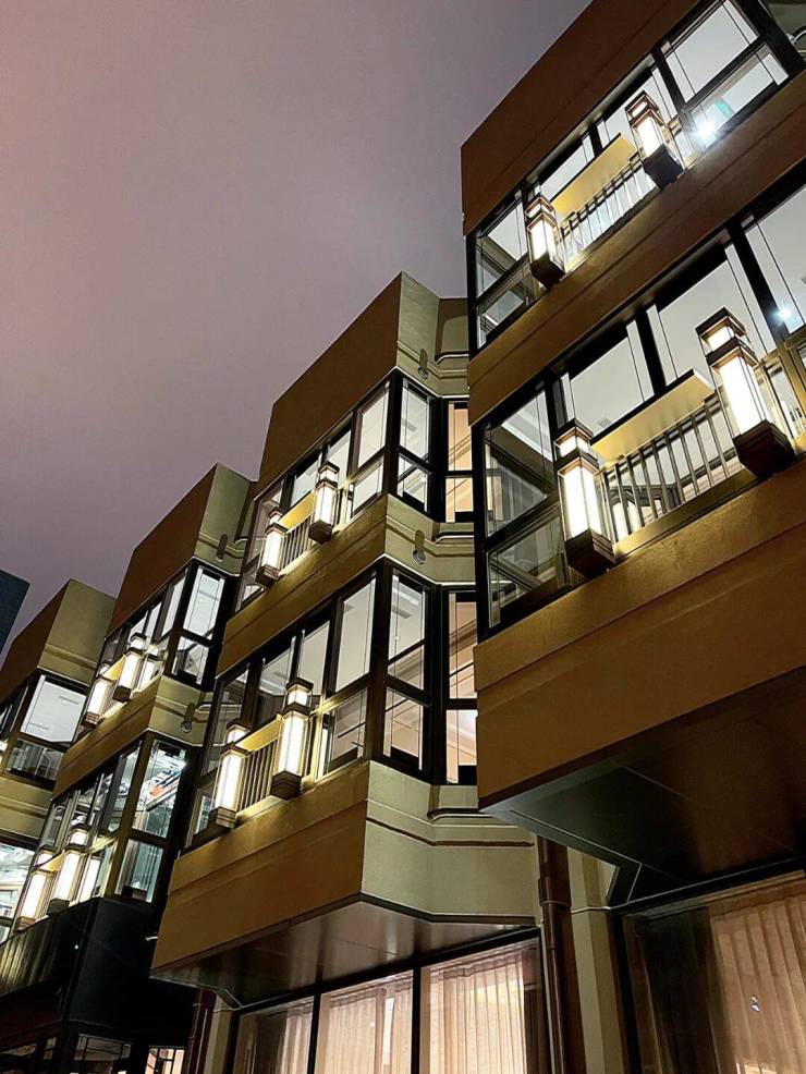 大楼主体分为3段,中间设置了两个“消防避难层”,还有大量空中绿化。优雅、永不过时的外立面,与外滩华尔道夫系出同门。