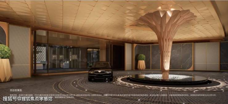 强烈的尊贵感和归家仪式感:项目主入口仿照五星级酒店打造环岛式落客区,超48米星级酒店式迎宾门廊、约10米挑高归家大堂。