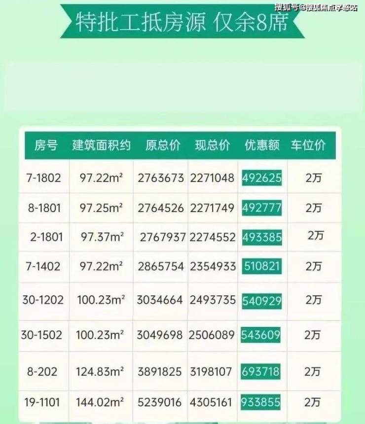 备案价*95%优惠*86.5%工抵房优惠+2万购车位1个
