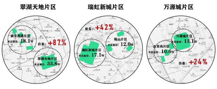 从成片式住宅的溢价中就能清晰的看出,它们比周边同类住宅的价格至少要高出