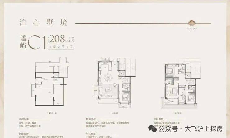 再来看建面约208㎡的下叠: