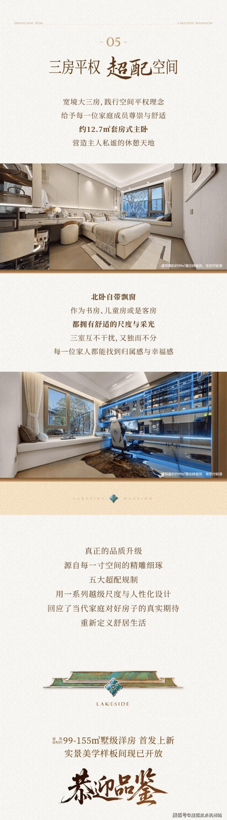 超低密规划:容积率仅 1.25(远低于常规 2.0),纯墅区规划,仅 308 户,无保障房配建,圈层纯粹、居住静谧。