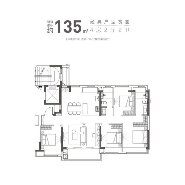 建面约135㎡4房2厅:终极改善,一步到位的理想家!