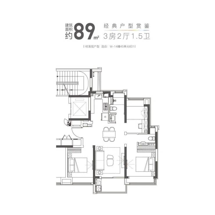 建面约89㎡3房2厅:三开间朝南,全飘窗设计,舒适度爆表!