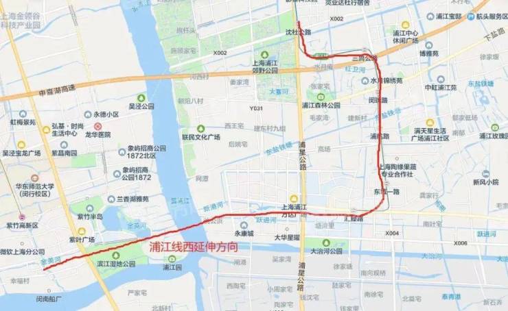 目前,关于浦江线西延伸线的走向研究,最主要的声音:自当前浦江线南端终点站汇臻路站向西,穿越黄浦江到江川路街道,与规划15号线南延伸线紫光路站实现换乘。