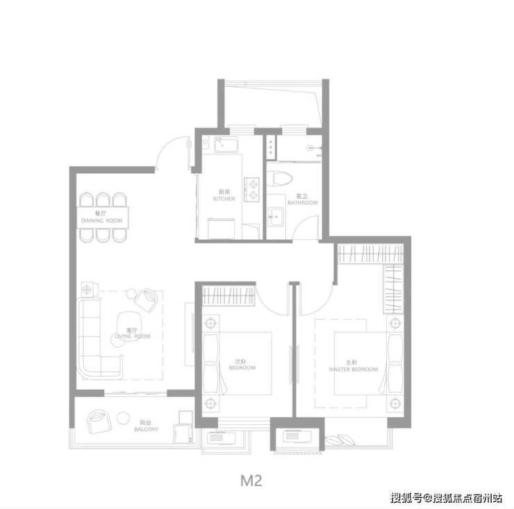 建面约90㎡2房2厅1卫,两间卧室朝南,舒适尺度搭配观景阳台,干湿分离的独立卫浴。